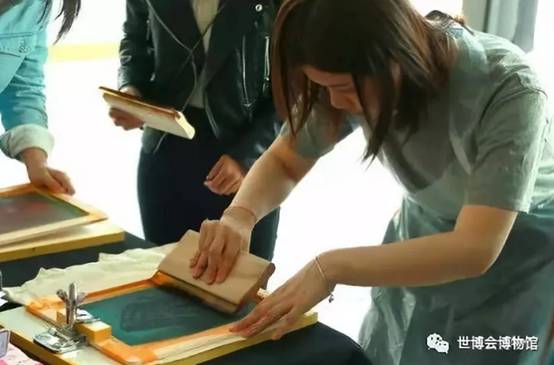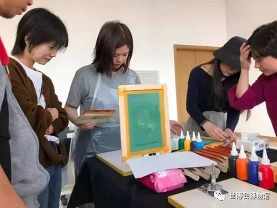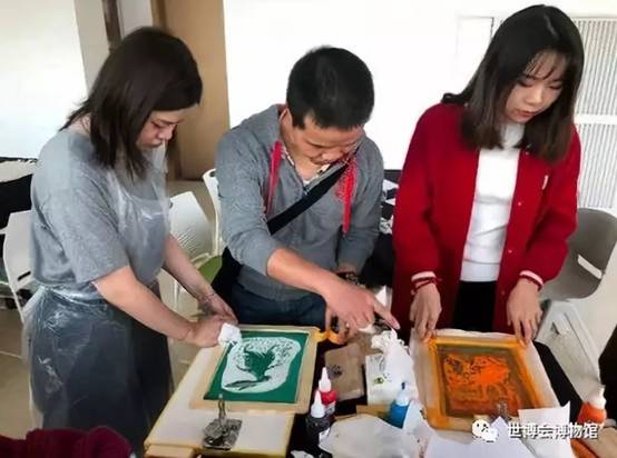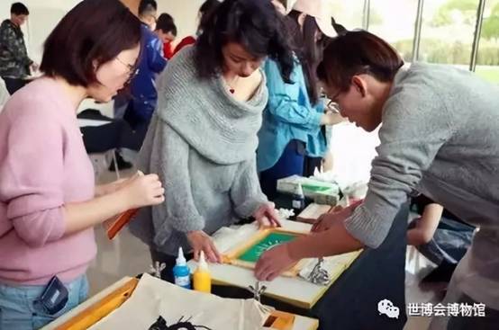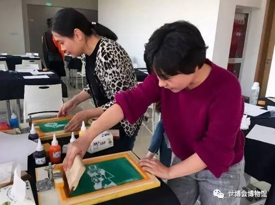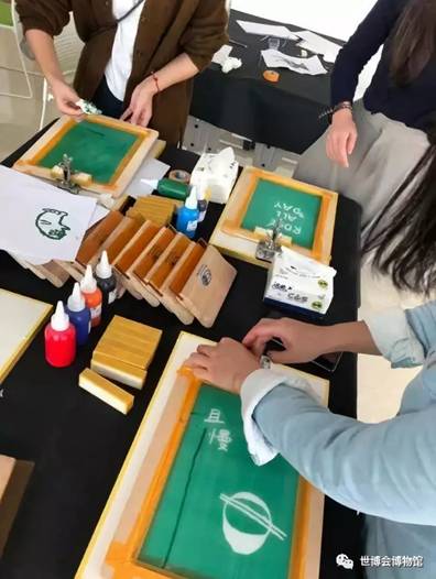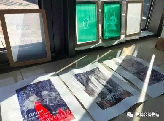 10月27日下午,世博会博物馆世博版画工作坊首次开课啦!老师选取了部分世博会历史海报,学员们以此为样板进行丝网版画印制体验,各自创作了自己亲手描绘印制的独特作品。