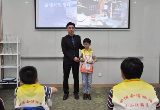 世博会博物馆副馆长郁镇宇为孩子们颁奖