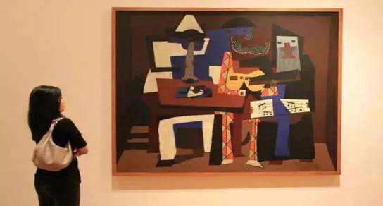 MoMA里的观众正在欣赏毕加索的《三个音乐家》