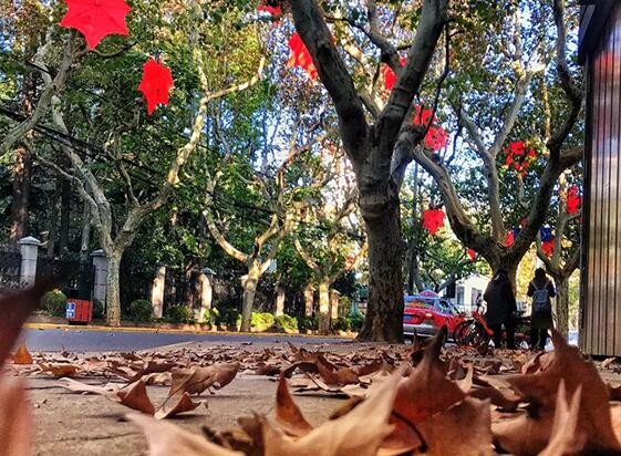 在街头等城市空间展出的艺术作品,是市民生活场景的一部分,也成了民众生活内容的一部分。因此,此类艺术作品的创作,应充分考虑当地居民的日常情感和体验。当你漫步在一个充满历史韵味的街区,道旁的梧桐树上突然出现大片的人造红枫叶。
