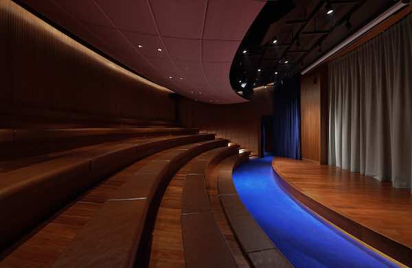一楼开辟了专门的咖啡吧区域,扇形的座位分布围绕中央的一个圆形小舞台,让这里随时可以变成半开放式的演讲空间。