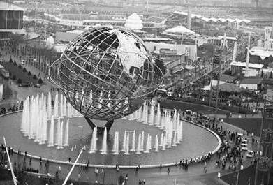 1964年纽约世博会继续紧扣“太空时代”主题,美国钢铁公司在法拉盛草地公园的“泰龙”和“佩利球”旧址地基上树立了一个高43米,直径37米,重400多吨的不锈钢地球,成为该届世博会最醒目的标志。这个“地球上最大的地球”建造起来颇有难度,因为“五大洲”质量分布极不均匀,严重的偏沉和头重脚轻需要在结构上平衡。