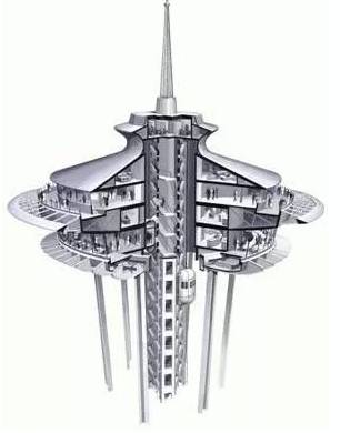 加州理工大学和华盛顿大学建筑系教授参与了工程设计,“太空针”足以承受每小时320公里的飓风和9级地震,这种超常的稳定性和安全性来自10米深、6000吨重的钢筋水泥基础。当地下部分的质量几乎和地上部分相等,“太空针”的重心仅仅高于地面1.5米。一个广为流传的笑话说,“太空针”上的“UFO”是美国总统在地球遭到劫难时逃往外星的飞船。可惜肯尼迪总统按动西雅图世博会开幕的电钮后,没来得及一睹“太空针”的芳容。他的遇难也纯属祸起萧墙。
