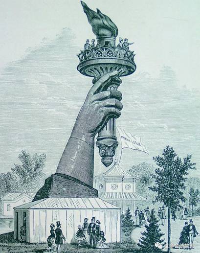 1876年,自由女神擎着火炬的手臂完成,随即赴美,参加美国独立百年世博会。人们都被它惊呆了,因为摆在他们面前的那只手,食指就长2.5米,连指甲都有25厘米厚,火炬上甚至能站满26个成年人。