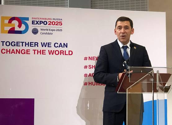 Evgeny Kuyvashev, Governor of the Sverdlovsk Region, introduced guests to Russia’s Expo bid, stating that the Expo 2025 Ekaterinburg project enjoys “wide public and government support” and that the region is a scientific and industrial leader in Russia.