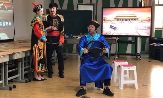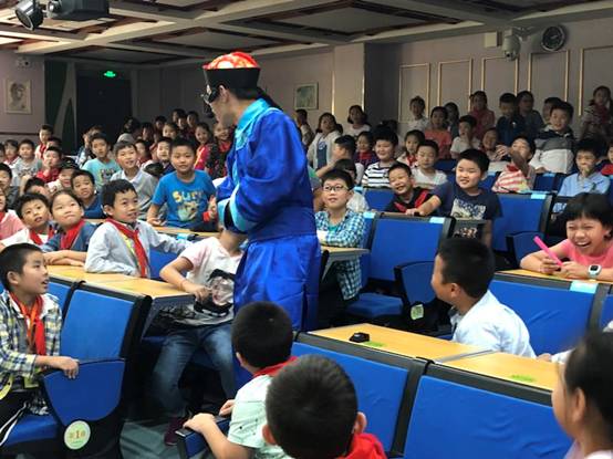 Then, in the auditorium of the school, Lecturer Jing Hai presented the "Dream of Mobility" to more than 200 students from other classes of Grade 3. The class also had a stage show full of surprises and laughter. The lecturer dressed in costumes and played a role in the stage show, which drove the students to laugh.