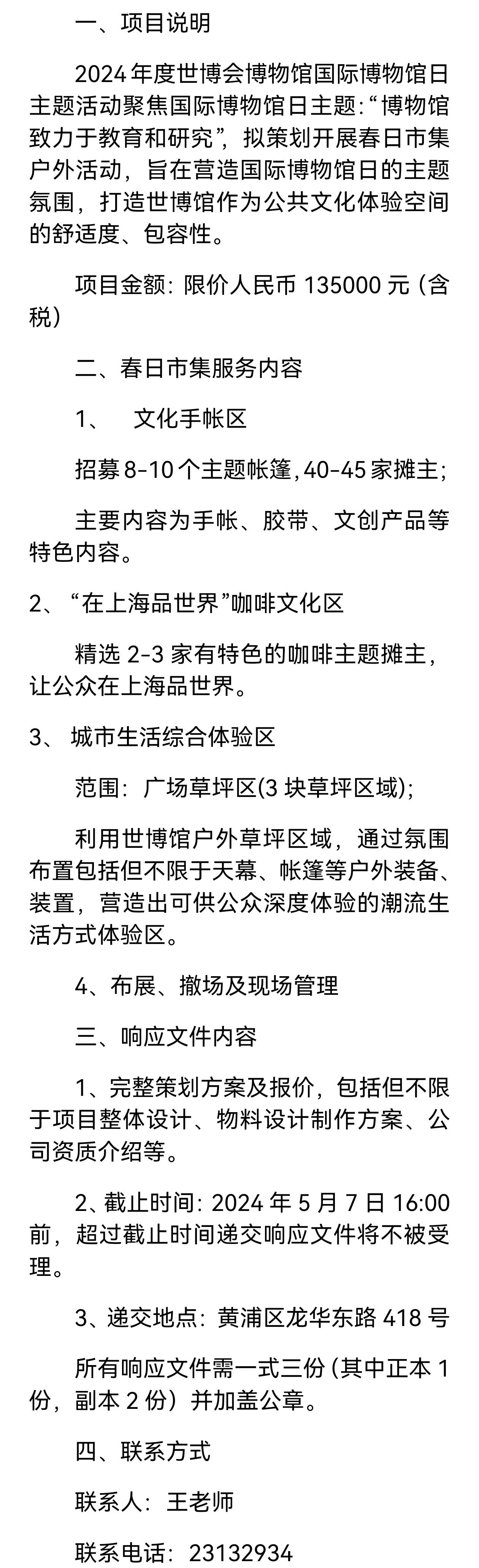 世博会博物馆国际博物馆日主题活动春日市集招标公告