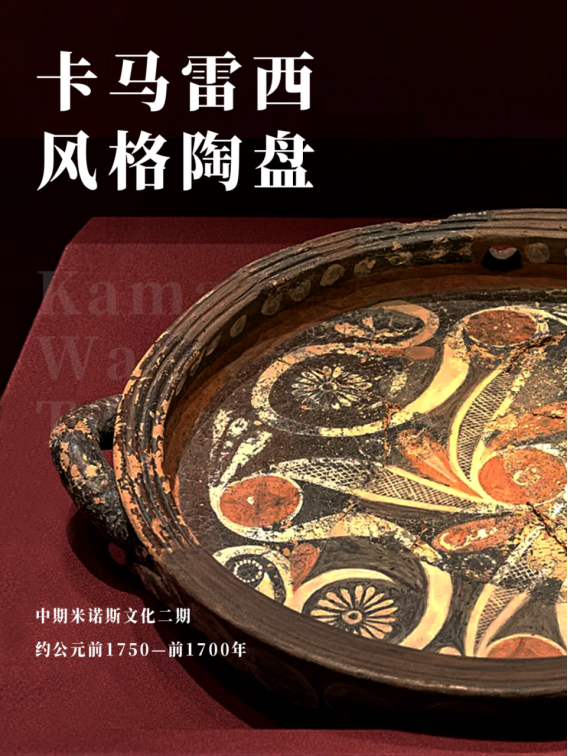 这个大型托盘外部是双斧图案,内底有错综复杂的螺旋形设计,辐射运动效果是卡马雷西风格陶器的特征之一。专家认为它的装饰处理,表明它可能是一个陈设器,而不是实用器。