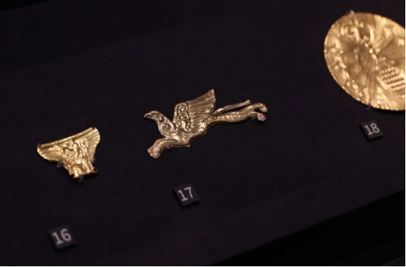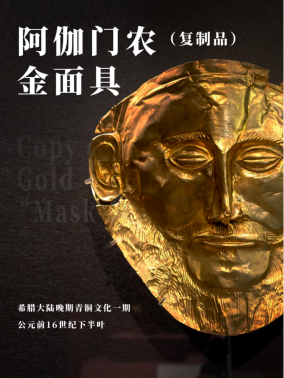 面具真正的主人后经证实,是迈锡尼文明早期统治阶层的一员,其所处时代比传说中阿伽门农的时代要早三百年。此复制品由19世纪知名考古绘图师埃米尔·吉列龙制作,他参与了施里曼主持的迈锡尼遗址发掘工作。除此之外,还有众多形形色色的黄金制品,例如...