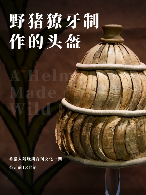 《荷马史诗》对这种头盔也有明确记载:“头盔的里层,交织着许多坚固的皮条,底下是一层毡制的衬里,外层两侧巧妙地装饰着雪白闪亮的野猪獠牙。”