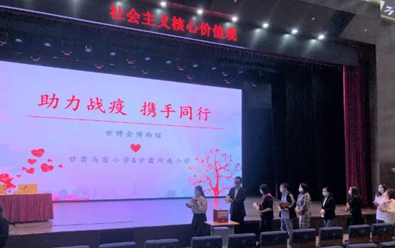 会上,世博馆全体员工还为我馆教育对接的两所甘肃贫困地区学校——马窑小学和河南小学进行捐款。当地水资源匮乏,卫生条件非常糟糕,学校刚刚复课。此次捐款所得主要用于为师生们采购口罩、免洗洗手液等防疫物资。大家表示,疫情散尽,国泰民安,是所有人的共同心愿。我们要与当地师生携手同行,共同战役!