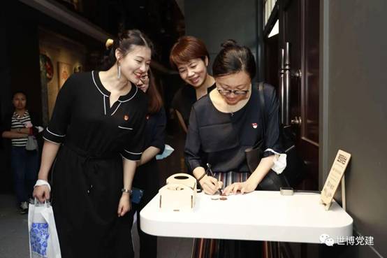 世博馆党总支副书记、第一党支部党员钟瑞滨在参观结束时参与互动留言