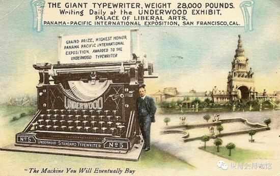 在1915年巴拿马世博会上,安德伍德打字机公司展出了一台高15英尺、长12英尺、重14吨的打字机,令不少参观者在它面前驻足留步。打字机,是用以代替手工书写、誊抄、复写和刻制蜡板的机器。最早的打字机是机械式打字机,效率较低,功能单一。随着科技的迅猛发展,各种新型的电子打字机不断涌现和广泛应用。