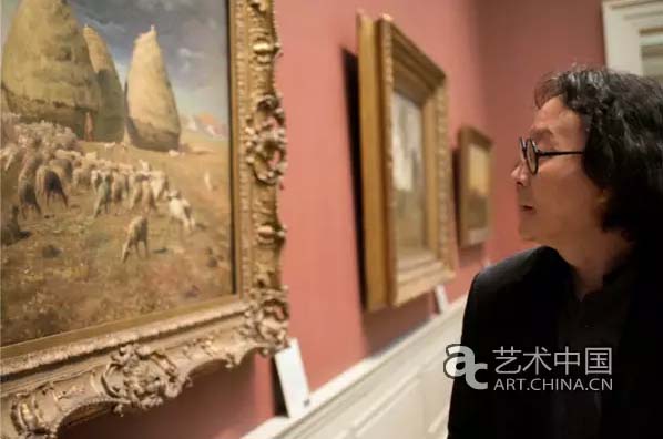 徐冰在米勒作品前(图片来源:大都会博物馆)