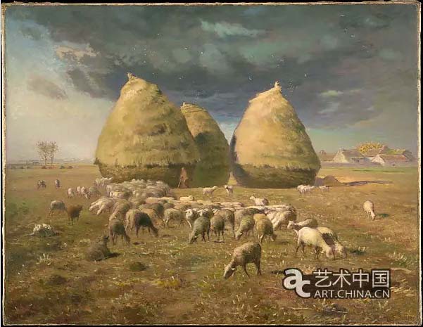 米勒,《草垛:秋天》(Haystacks: Autumn),1874,布面油画,85.1x110.2cm(图片来源:大都会博物馆)