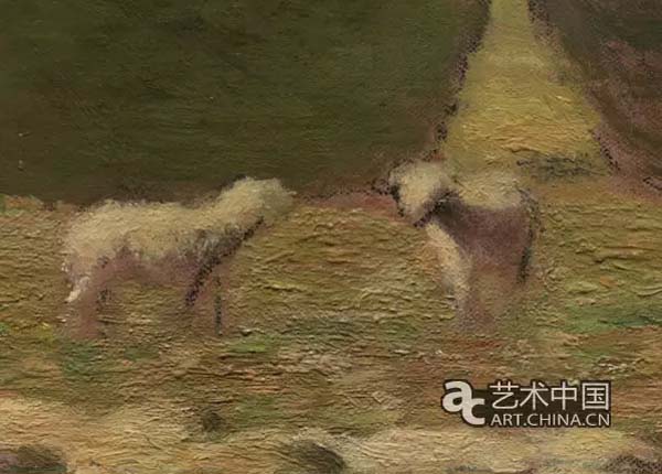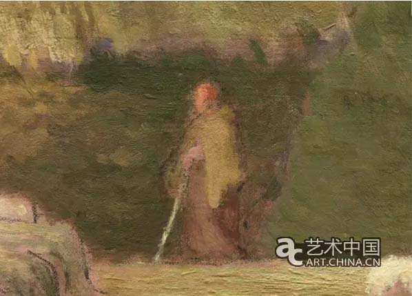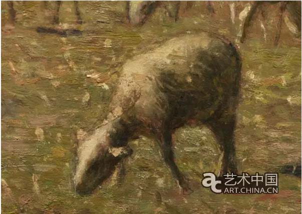 画面中可以循迹到米勒晚期绘画风格的特征:艺术家有意识地将部分紫粉色底色暴露在画布之上,用笔放松自如,留下些许速写般的原始痕迹,画作底稿若隐若现,尤其在勾勒草垛和羊群的时候格外明显。(编译/良月;图片及内容来源:大都会博物馆)