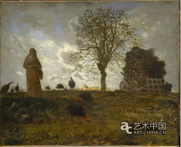 米勒,《有火鸡的秋日农场》(Autumn Landscape with a Flock of Turkeys),1872-1873,布面油画,81x99.1cm(图片来源:大都会博物馆)