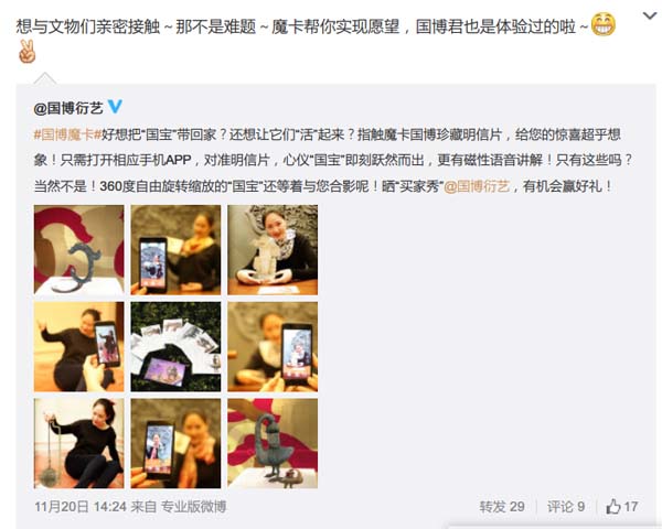 从以上微博账号在微博的活动情况来看,微博为博物馆解决以下三个在传统传播中难以解决的问题: