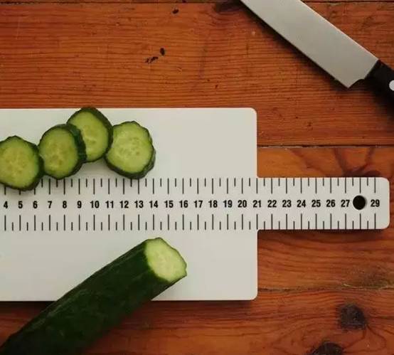 这款上面附着刻度的“CUT IT SHARP”量尺砧板,由坚韧、无孔隙的可丽耐材质制成,让你可以依据上头的刻度切出相同大小的小黄瓜、萝卜等食材,对于亟需提高自己刀法功力的朋友,是相当聪明的选择。