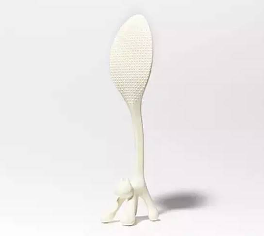 符合人体工学的饭匙,因为有了猫咪的甜蜜作伴,即使平放在桌面上时也有猫咪顶着,方便下一次的取用。