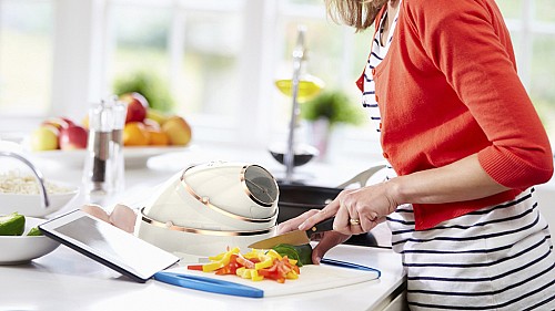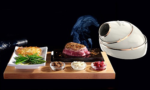 设计师Seoyeonjin Choi设计了这款便携式油烟机,不光能吸走油烟,它还可以作为一盏吊灯,照亮你的厨房。这款油烟机没有繁琐的安装程序,在你做饭的时候,直接把它放在桌上就能使用。其内置的大吸力风扇,可以将油烟吸附到内部。在其内部,则带有完善的过滤系统,包括活性炭滤网、HEPA滤网等等,可以将油烟等物质进行过滤,让油烟不再四处飞散。