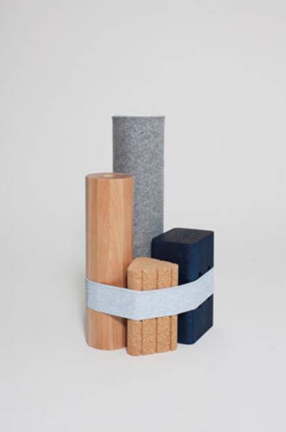 Joseph Guerra和Sina Sonrab两位设计师就是厌倦了市场上那些千篇一律的瑜伽垫,决定做一些改变。这套 Shape Bundle瑜伽装备十分节约空间,它由五部分组成:一块垫子、一个三角形和一个长方形的木块作为支撑、一个圆柱体的木块用于腿部的拉伸、一个把它们捆绑在一起的绑带。别看它们都只是些简单的形状,设计师们可是花了不少的心思呢。比如长方形的那块,中间留有两个洞,这样一来,带着它也就不会很费劲了。垫子也很有讲究,它分为两层,上层密度较小起到缓冲的作用,下层密度较大防止垫子乱滑。