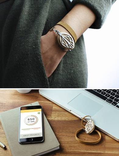 Leaf女性智能手环是 Bellabeat专为为女性设计的智能手环,并且可以一直使用它直到你生命结束。Leaf的主体采用木材制成,不锈钢的叶面进行加固,造型上则采用了树叶的天然造型,简约而不失高雅。Leaf在具有普通手环的基本功能之外,它还能够检测女性各种活动和数据,例如经期、避孕药摄入量、排卵期等,甚至可以通过记录你的呼吸情况,判断你的压力水平。