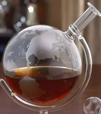 蚀刻地球仪酒瓶。喝完酒,整个世界都在旋转。