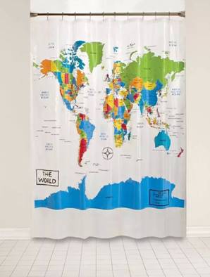 世界地图浴帘。一边沐浴,一边研究世界的大好河山吧。