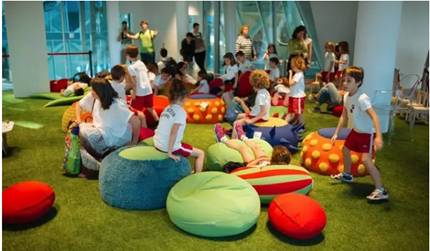 意大利馆内给小朋友休息的椅子,造型各异,配色大胆,颇受小朋友们的欢迎。
