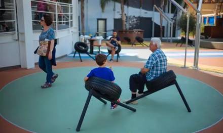 阿根廷馆门口的轮胎椅子,一个轮胎,再加三根固定的支架,一张特别的椅子就这样诞生了,不仅是废物利用,还是好看又实用的设计。