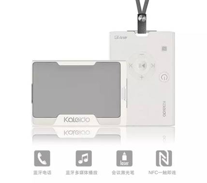 Kaleido卡乐多时尚智趣卡托是由舟山安特佳智能科技设计而成。它内置蓝牙系统,插上耳机摇身变成蓝牙通话设备,20 小时超长通话时间,微信语音正常接收;此外,内置 TI 耳机专用驱动芯片,可利用蓝牙进行多媒体播放;同时,它带有会议激光笔,以及 NFC 系统,可与手机一键快连。