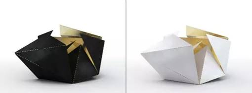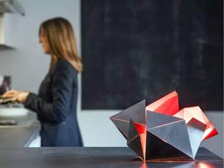 ORIGAMI LAMP折纸灯,并非是以纸为原料,而是造型按照了折纸设计,并且这张折纸可不是有规律的折叠,更像是被团出的废纸。这款灯的材料是使用0.6 mm的不锈钢作为灯罩,没有灯座、灯柱,内部的灯光通过折射释放光亮,有多种颜色可供选择。作为房间的装饰,这是一个不错的设计。