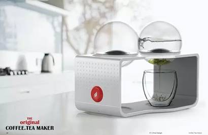 这个新概念的咖啡、茶饮机来自 Sunny Wong,饮品盛装的球星容器为硼硅玻璃材质,两个模块分别对应咖啡和茶水。需要接水的时候只要按压球面,就会有冲泡好的茶水和咖啡流出。