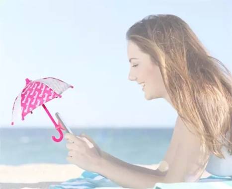 小巧可爱的模样,就像芭比娃娃的配件一样,但其实却是手机专用的晴雨两用小伞,伞柄处还贴心的附了吸盘,黏在手机背后,不用特定腾出手,就能帮手机在大雨中,减少被从天而降的雨珠打湿的机率,在烈日中遮蔽会害手机荧幕一整个黑到看不清楚的大太阳,降低紫外线对眼睛所造成的伤害和疲劳,最适合暑假来临在家待不住,每天往外跑的户外族使用,特别是现在太阳一天比一天大,自己撑伞之余,也顺手帮手机遮个阳。