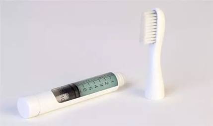 Twist&Brush是西班牙设计师Awamura ganjavian提出的一个牙刷与牙膏的二合一概念,它的特点与巧妙之处都在牙刷把手上体现。把手是一个牙膏存储和分配器,与牙刷头相连接,外观和工作时的原理都与注射器类似,我们先行把牙膏加满,使用时根据透明窗中的标量旋转尾部的旋钮,就可以在牙刷上挤出定量的牙膏。