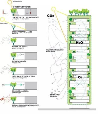 “垂直森林”的植物将会随着季节变化而产生不同的景色:春天,这些树木将成为一道充满绿意的风景;夏天,它们的枝叶可以为公寓主人遮挡地中海上空的阳光,用浓荫给住户们带来清凉;秋天,这些不同种类的树木叶子将形成五彩斑斓的美景;到了冬天,“垂直森林”建筑上的树木叶子掉光后,光秃的树木也不会影响住户们坐在阳台上晒太阳。