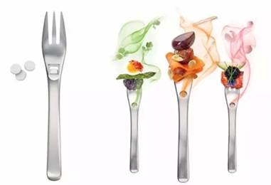 拿起刀叉就可以嗅到香味,而且,和你迟到的会不一样哦,是不是很奇特的体验。餐具上隐藏的小暗扣可以释放香气,这样的饮食体验一定要试试。