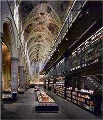又译为天堂书店,位于荷兰马斯特里赫特,内部陈列充满现代气息。书店前身是拥有800年历史的多米尼加教堂,由荷兰建筑师莫克斯与基洛德共同设计完成。整个书店将现代元素与歌德式建筑风格相结合,而教堂庄严凝重的氛围与书局的主题气氛不谋而合,不仅保持了多米尼加教堂的历史古貌,也给现代人带来了一个恬静的购物休憩场所。