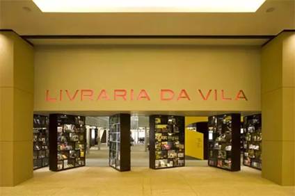 巴西圣保罗当地建筑师Isay Weinfeld所设计的这间书店,大门的设计非常特别,书店正门以旋转玻璃书橱取而代之。低低的天井,黑色基调的室内装修,弱光源的低调照明,墙边固定的沙发座。嵌入整面内墙的书架,累计长度1280米,甚至楼层藻井处敞开的断面,也被设计成了书架样式。
