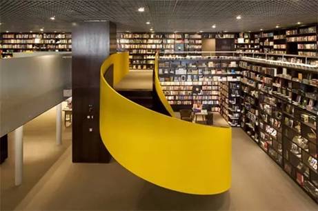 葡萄牙里斯本的这家书店,前身是挑高的工业厂房,坐拥得天独厚的室内空间,宽敞的像座停机坪。白色的墙壁缠绕着外露的管线,圆弧状的木质天花板垂挂着金属吊灯,一进店门,令人瞠目结舌的书架墙迎面而来,一楼与二楼相加陈列了超过二十层,非常壮观。若想翻阅高楼层的书,店员会搬来梯子帮你取得。由于室内全数打通,任何角度都无遮蔽物,店内景致一览无遗,其中包括一具以细线悬挂在空中、长了翅膀的飞天脚踏车骑士模型。