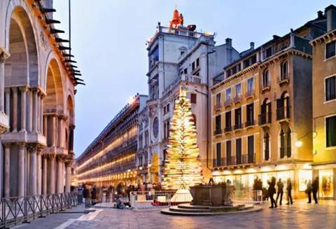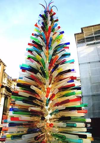 设计师Giovanni and Simone Cenedese和Architects Studio DDF在意大利城市广场上搭起了24-feet高的彩色玻璃管圣诞树,由1000多个吹制的玻璃管组成。
