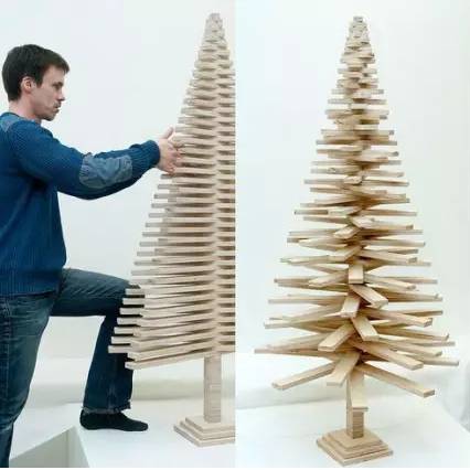 Bu?ro North设计的圣诞树简约现代,使用再生环保材料,flat-packed方便运输,可由使用者自行组装。