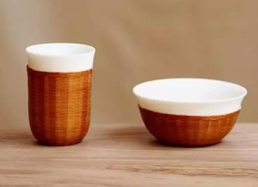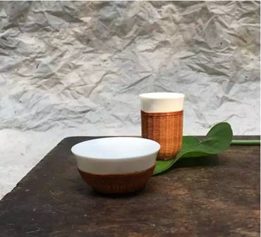 品茶,是优雅的生活方式之一。用竹编瓷胎杯子品茗,仿佛置身竹林。