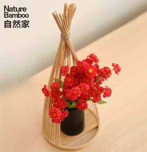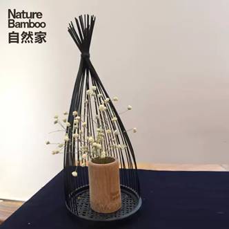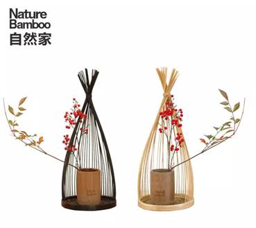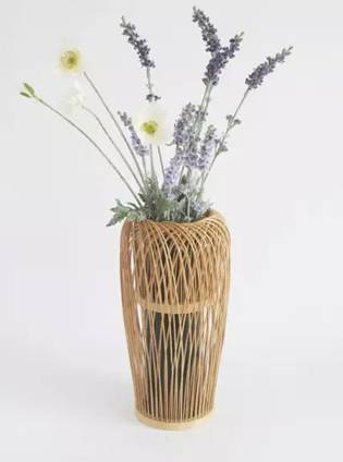 来自鸟巢形态的灵感给这款花器带来了一丝建筑感。每一条竹丝都经过人工的慢火定型。