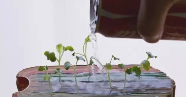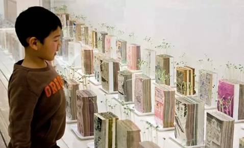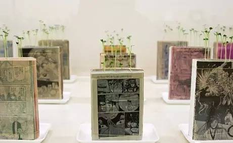 日本艺术家Koshi Kawachi脑洞大开,在书里放种子,最后还真的长出了绿芽。