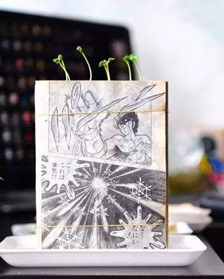 省去花盆和土壤,将一颗颗种子撒在漫画月刊中自己最喜欢的一页。原本来自树木的纸张,完成精神充饥之后,还能成为孕育小树苗的土壤。