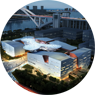 世博馆室外流线注重与城市的互动性,由东侧主入口广场“欢庆之云”单体下方的过渡空间进入,沿南侧大台阶拾级而上,可以抵达6米公共活动平台和12米公共活动连廊,连廊连接南北两侧屋顶平台,布置局部展陈,形成公众参与的交互场所。由北侧12米屋顶平台继续向上,到达24米公共活动屋顶花园,沿西侧连廊向南,连接两座临江屋顶花园区,同时可以进入世博馆建筑最高点“欢庆之云”建筑单体驻足眺望。