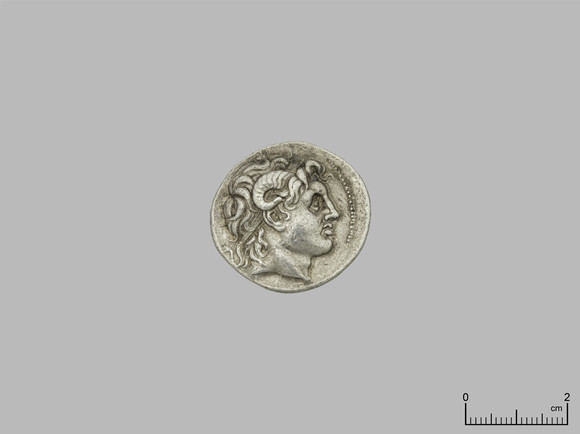 四德拉克马银币正面为头戴饰带的亚历山大头像,头上还有羊角,寓意阿蒙神和宙斯的结合。背面为坐在宝座上的雅典娜女神,身着战服,右手托着胜利女神尼姬,左臂靠着盾牌,身旁戳着一支长枪。代表“国王吕西马科斯”的属格形式(ΒΑΣΙΛΕΩΣΛΥΣΙΜΑΧΟΥ)的希腊语铭文分列在左右两侧。