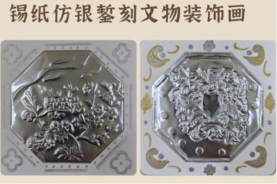 使用锡纸画来模拟银器錾刻工艺,在制作中感受外销银器纹样的雅趣和海丝之路上的中西融合。
